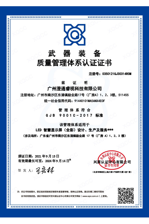 質(zhì)量管理體系認(rèn)證證書英文